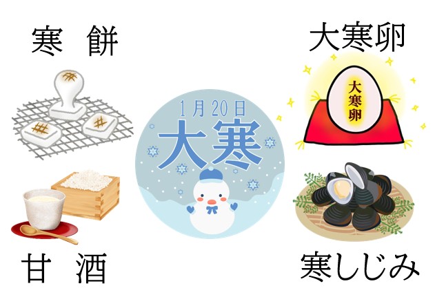• 大寒の日(1月20日)は「甘酒の日」とされ、寒さで弱りやすい体を温める飲み物として親しまれてきた。